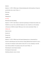 Question 1. 1.(TCO 1) Which aspect of financial planning deals with the purchase of long-term growth funds such as stocks? (Points : 4) Borrowing